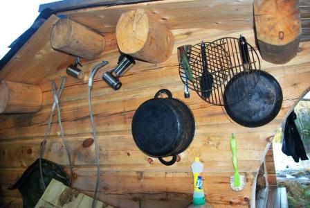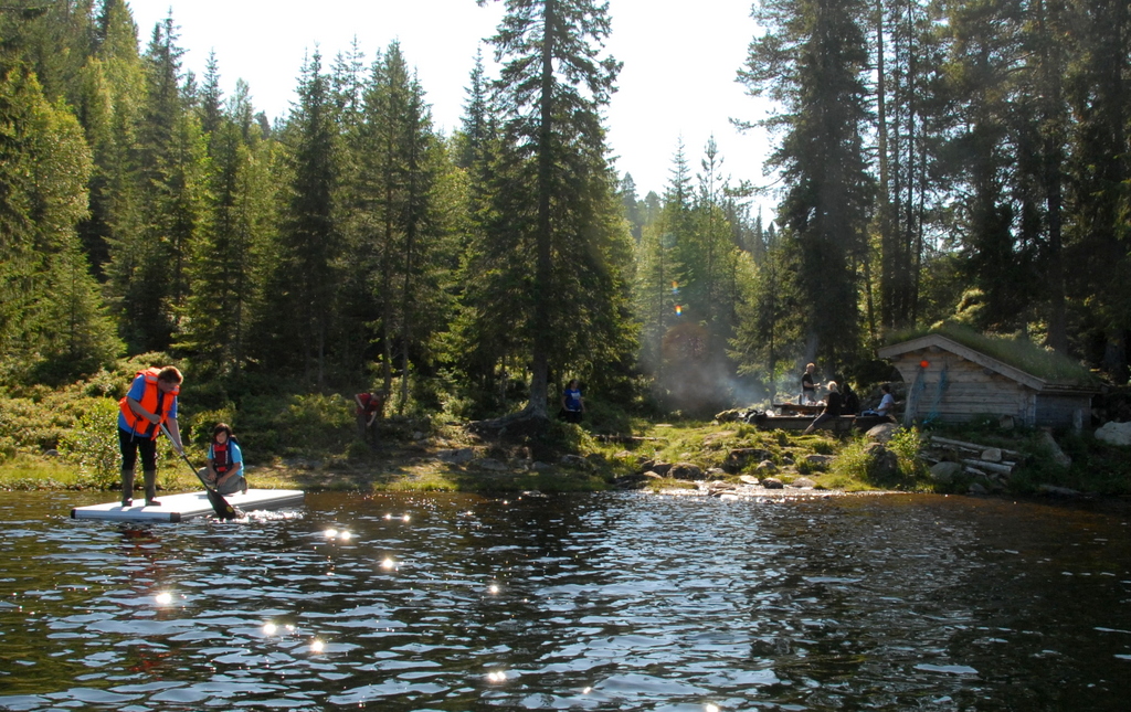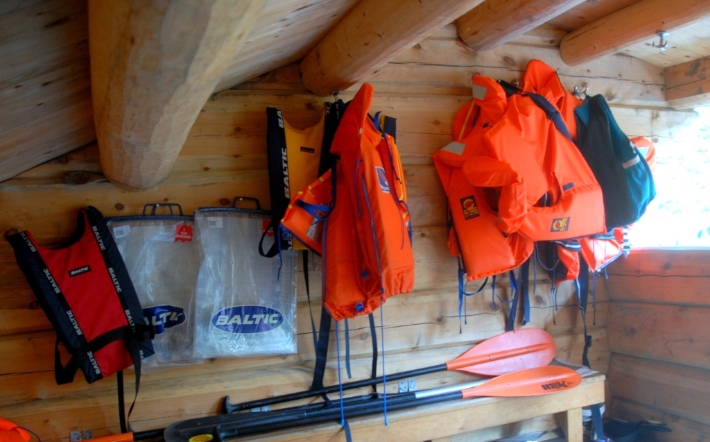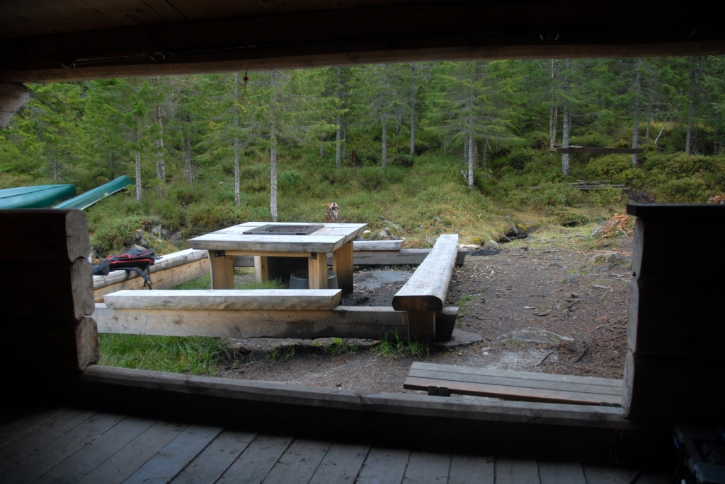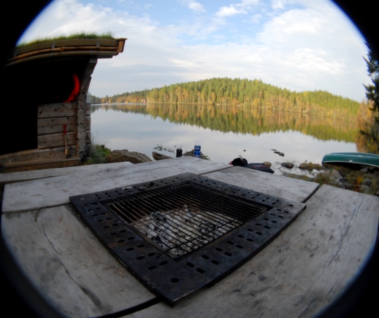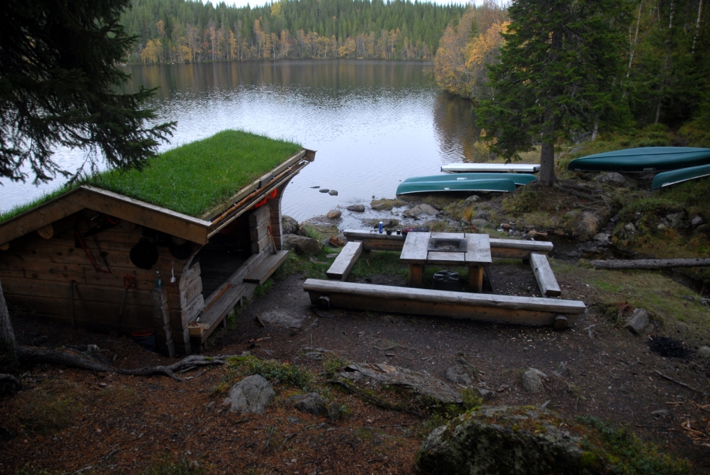 med innebygd grill. Ved leiren ligger fire kanoer samt noen