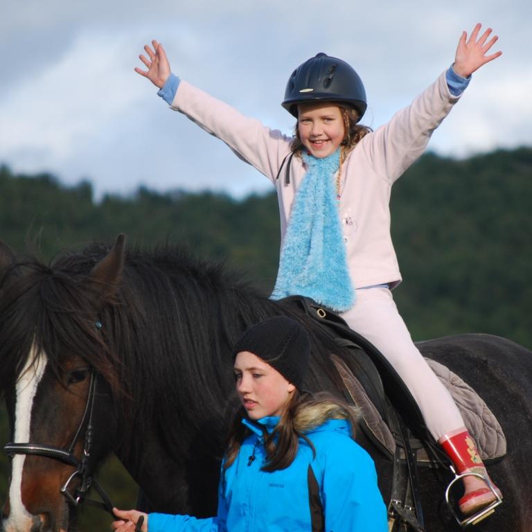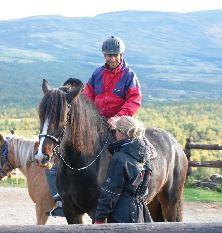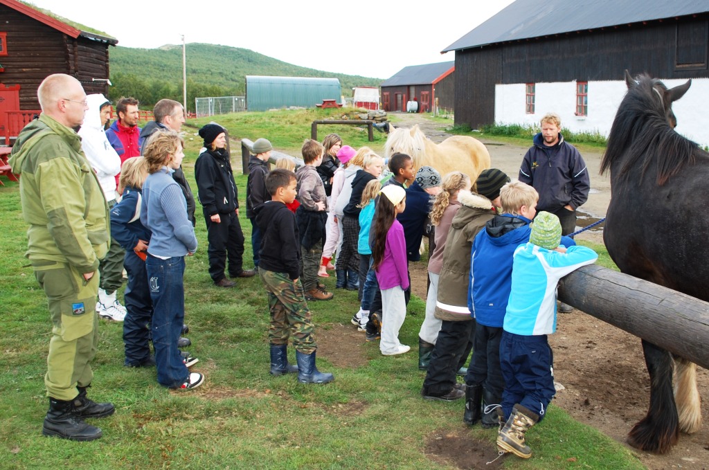 besøk på Hjerkinn Fjellstue, hvor alle som ville fikk ri hest, hilse på