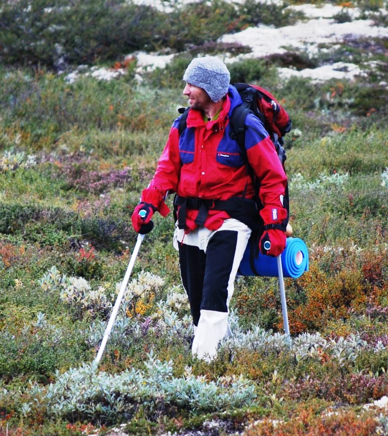 Under: Gudmund påstår at bakgrunnen for krykkene er en fotballskade,